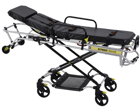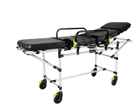 Maca com regulagem de altura em 8 níveis, facilitando operações de transferência de pacientes e proporcionando maior conforto durante o transporte.