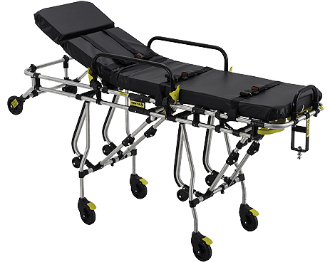 Maca retrátil básica, forte, robusta, de baixa manutenção e sistema único de retração. A maca essencial para qualquer unidade de resgate.
