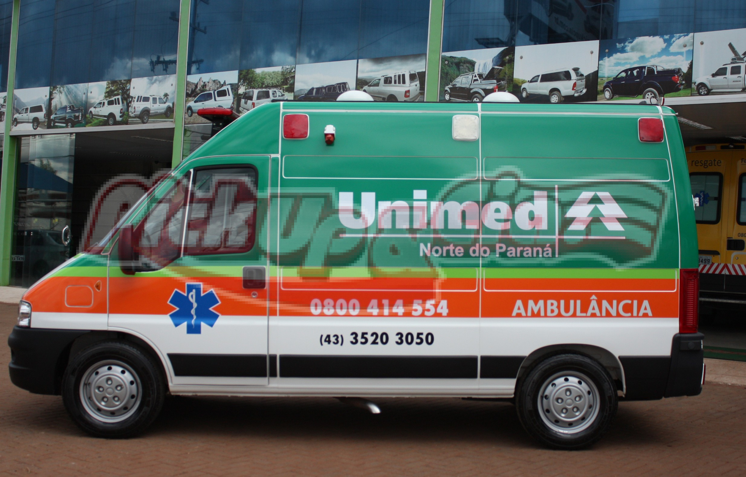 Vidro fixo e com película jateada nas duas portas traseiras; Vidro de correr e com película jateada na porta lateral; Vidro de correr junto à divisória entre a cabine do motorista e a do paciente.DEMAIS ITENS: