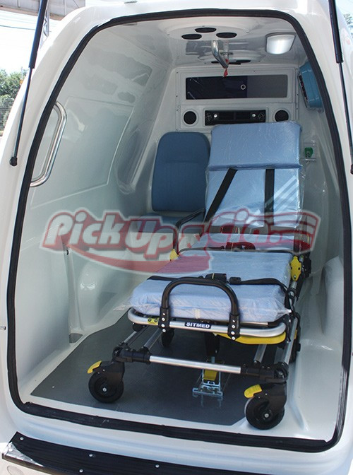 - Uma tampa traseira inteiriça com abertura na vertical a fim de facilitar a entrada e saída do paciente em local com transito intenso;