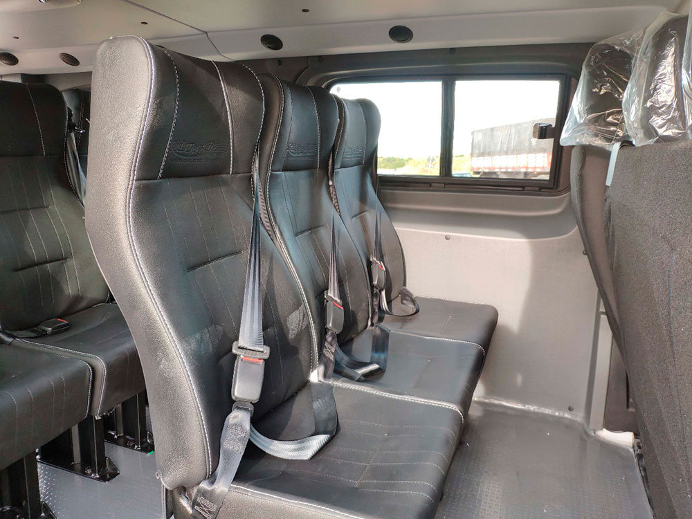 E, se você deseja um toque extra de sofisticação, oferecemos opcionais exclusivos como frigobar, cinto de segurança de três pontos e encosto de braço em todos os bancos — tudo para transformar sua van de passageiros em um ambiente de viagem confortável e seguro.
