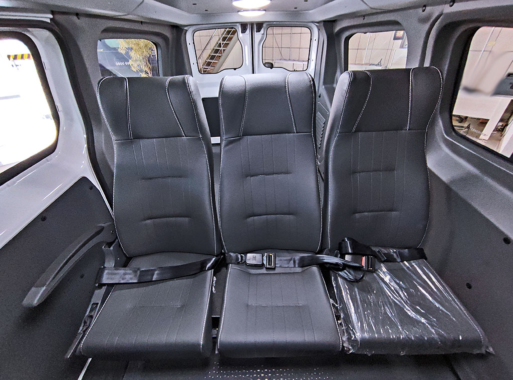 Transformação de van para 10 + 1 passageiros e carga. Van mista carga e passageiro.