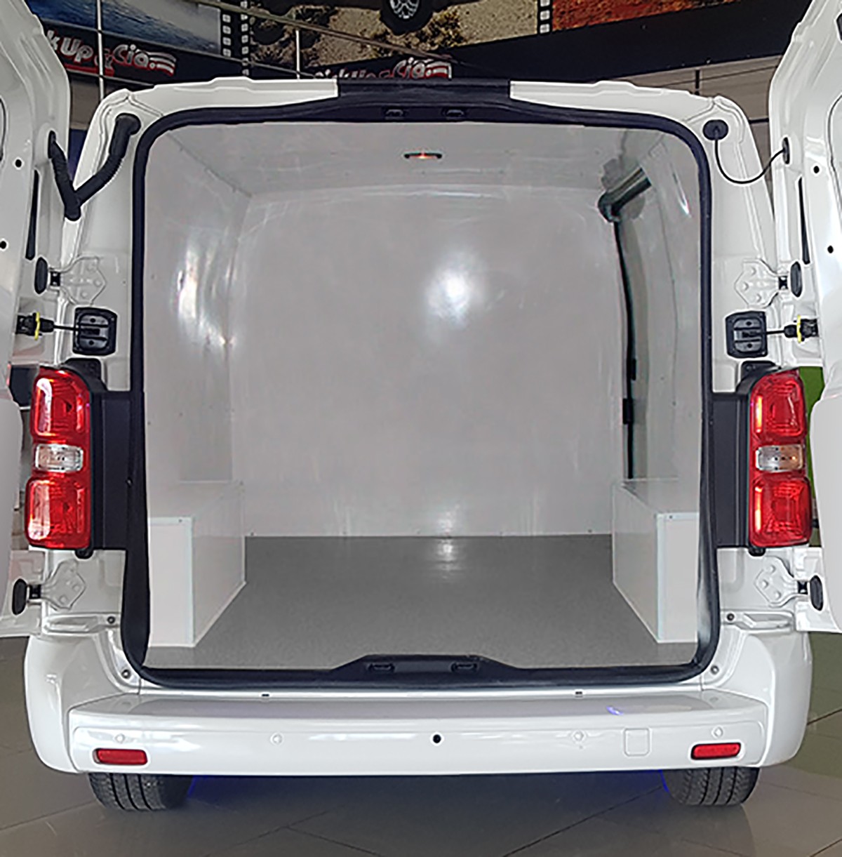 – Revestimento interno nas laterais e teto em fibra de vidro (PRFV em GEL COAT BRANCO);
